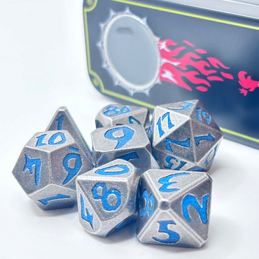The set comes packaged in a collectable metal storage case that is lined with foam to keep your dice extra comfy.