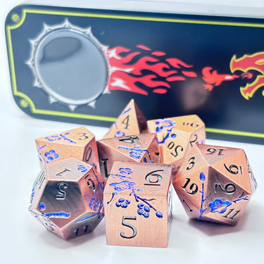 The set comes packaged in a collectable metal storage case that is lined with foam to keep your dice extra comfy.