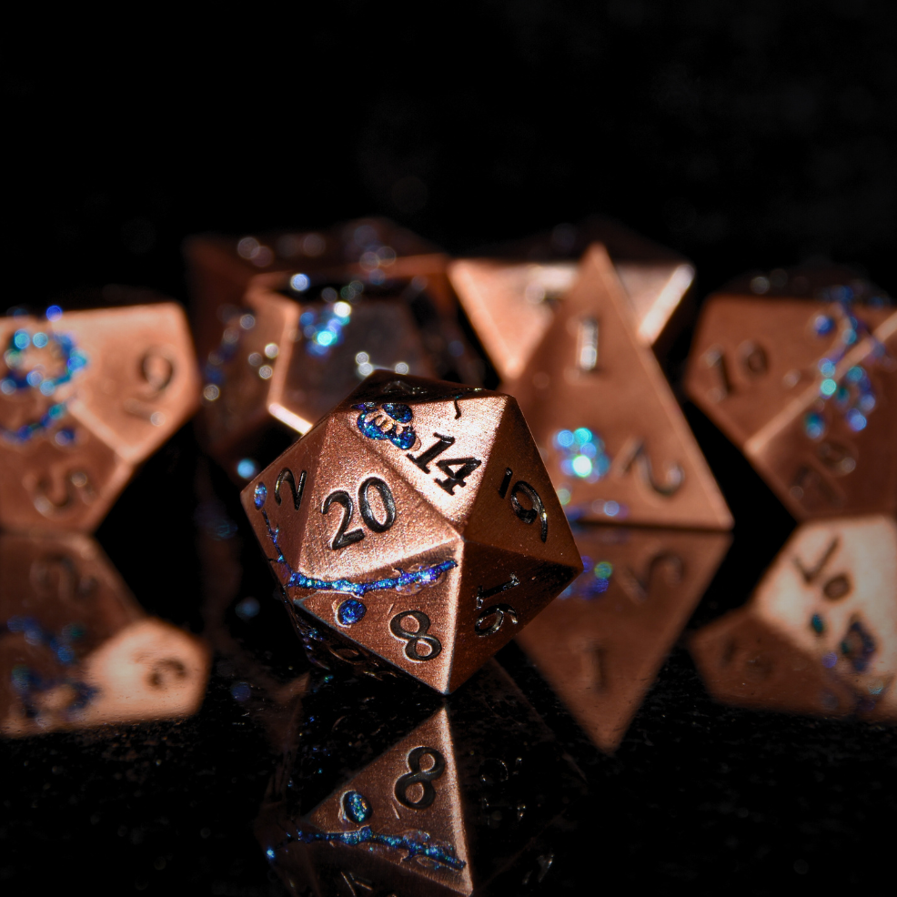 No mere plastic here! These hefty, weighty dice feel like you’re wielding a legendary weapon in your hands. Gear up, roll with power, and let the dice decide your destiny! Ideal for any table top RPG game.