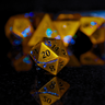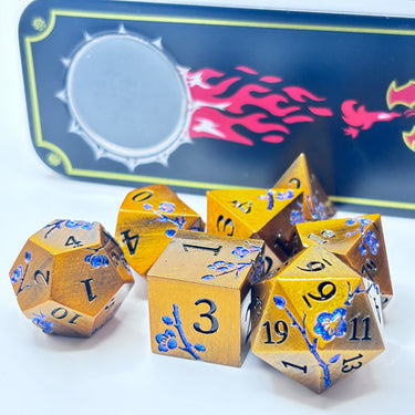 The set comes packaged in a collectable metal storage case that is lined with foam to keep your dice extra comfy.