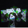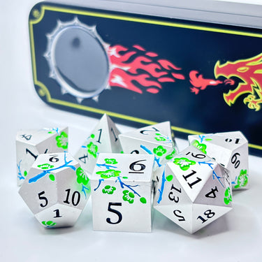 The set comes packaged in a collectable metal storage case that is lined with foam to keep your dice extra comfy.