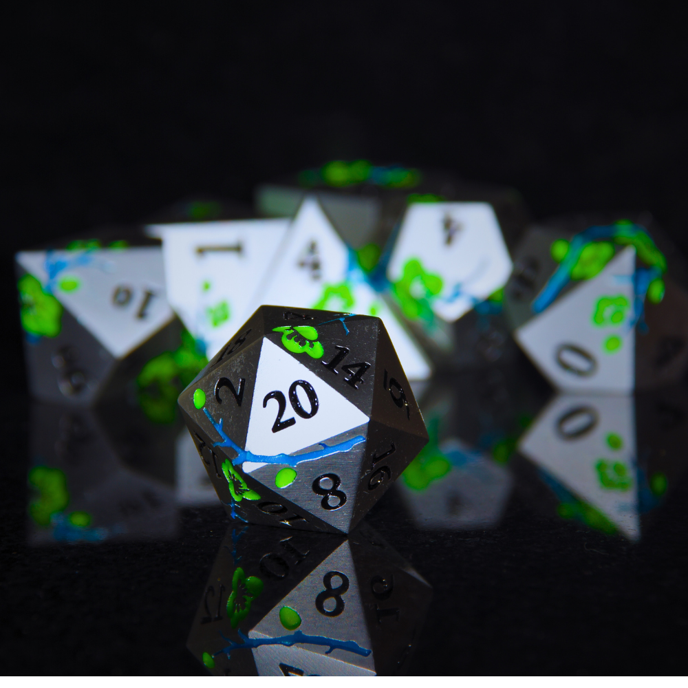 No mere plastic here! These hefty, weighty dice feel like you’re wielding a legendary weapon in your hands. Gear up, roll with power, and let the dice decide your destiny! Ideal for any table top RPG game.