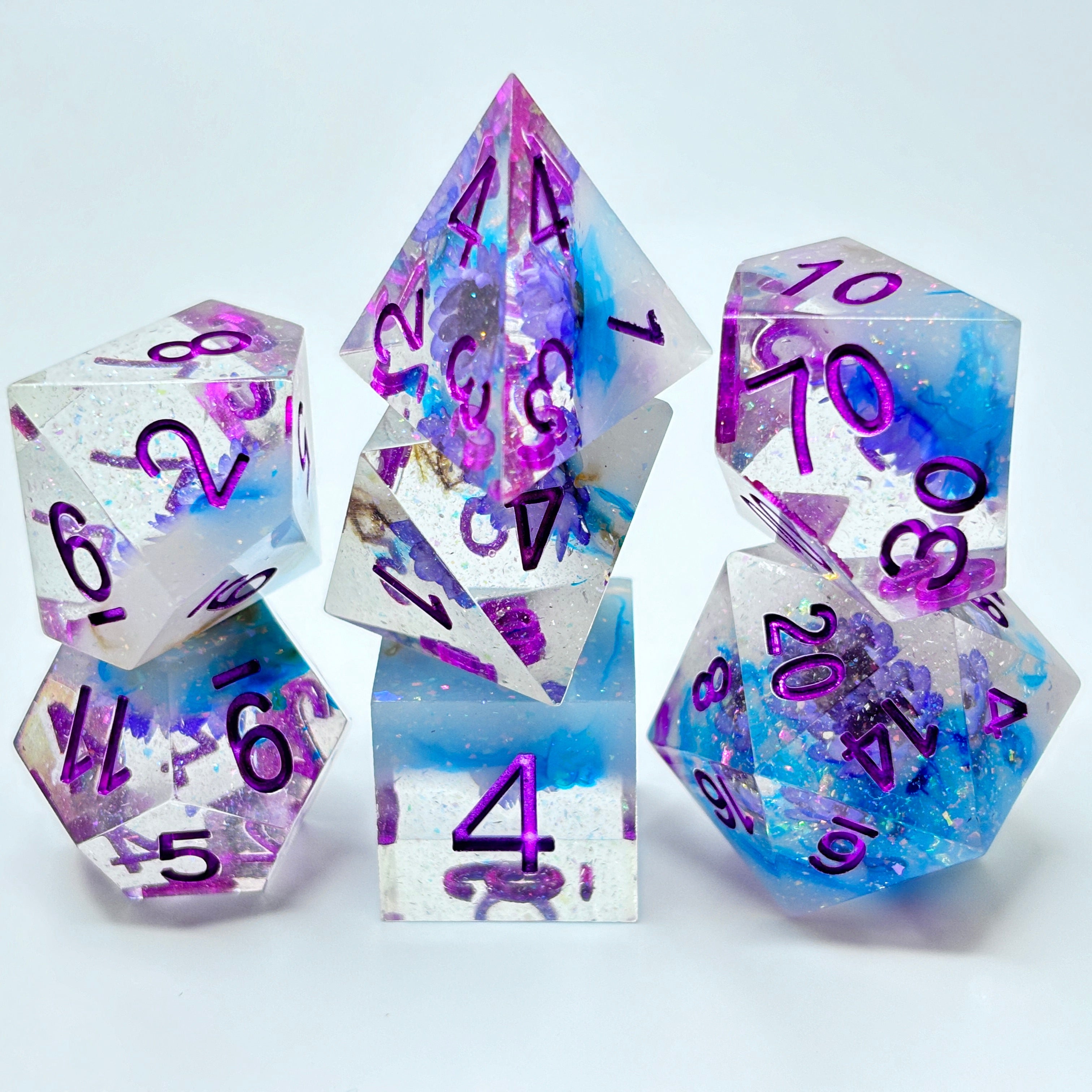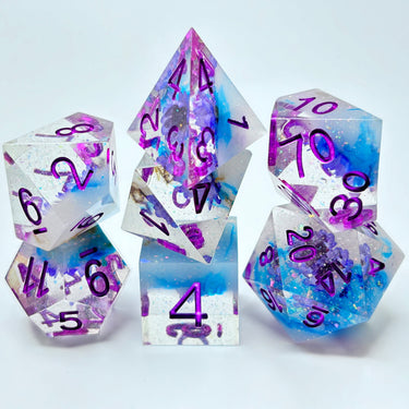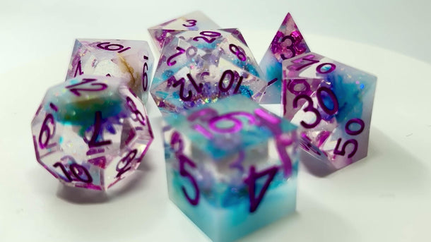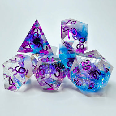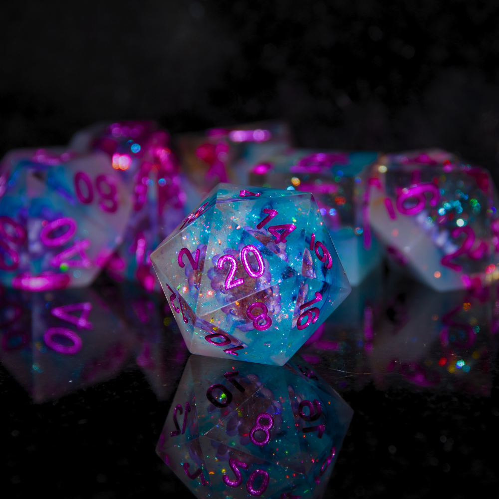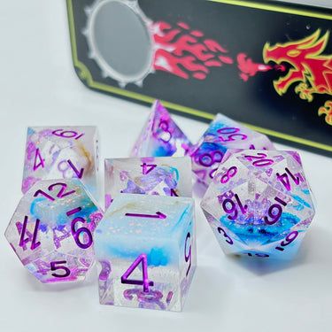 Dive into fun with these brilliantly crafted resin D&D dice, where each roll brings a splash of color and creativity! Expertly designed with intricate details and a smooth finish, these dice are as much a joy to look at as they are to roll.