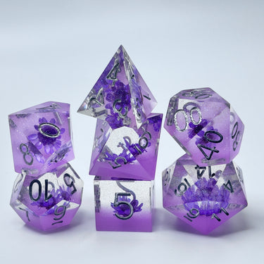 Dive into fun with these brilliantly crafted resin D&D dice, where each roll brings a splash of color and creativity! Expertly designed with intricate details and a smooth finish, these dice are as much a joy to look at as they are to roll.