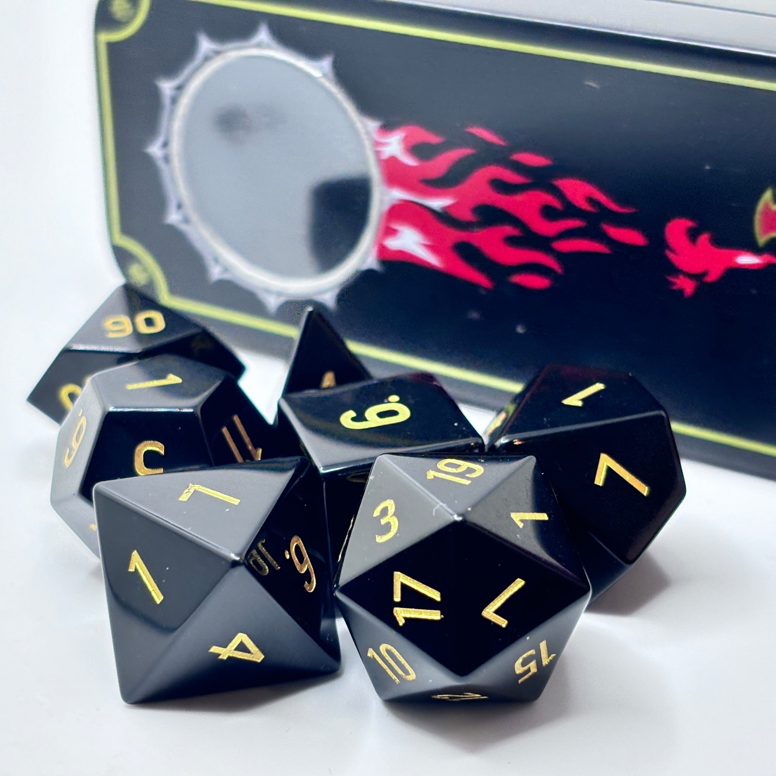 Exclusively included with all premium dice sets (metal, liquid core, gemstone, glass, and resin) our collectible Dragon Tin adds a gift-ready, display-worthy touch to your order. Even without a photo, it's a standout feature customers love.